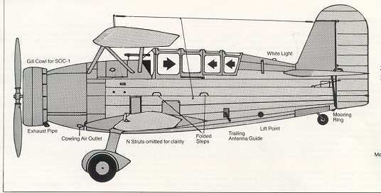 The prototype sported a center float with retractable wheels, but production machines were built to use either floats or conventional landing gear, either of which could be swapped out quickly depending on mission requirements. Performance was not much different, whether floats or wheels were installed; top speed was 165mph with floats and only 3 mph faster with wheels, while the wheeled version’s range of 697 miles was only 24 miles better than the float plane. Powered by a Pratt&Whitney R-1340 radial engine of equally ancient design (designed in 1926), all SOC variants were armed with one fixed, forward-firing .30 cal MG and a flexible .30 for the radioman/observer. The aircraft could also loft two 100 lb. bombs.
