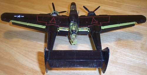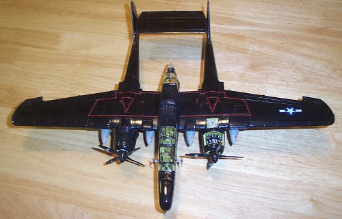 The kit is molded in black plastic. I admit it. I built the P-61B and didn’t