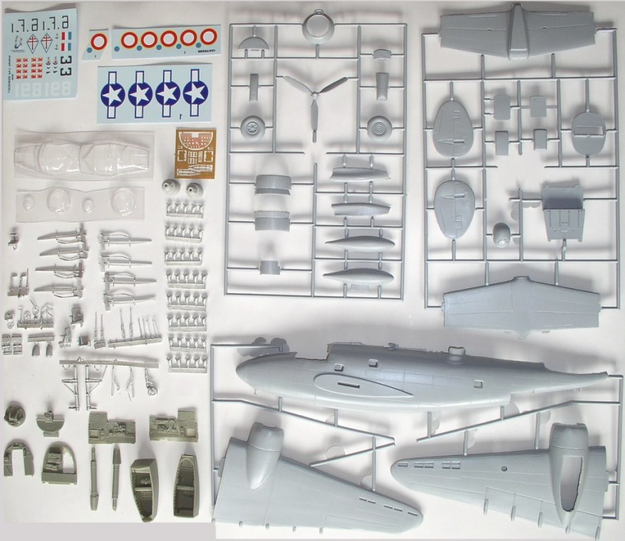 The kit contains 170 parts; 47 in plastic,7 in transparent plastic, 8 vac-transparent parts (half are bonus), 14 p/etched, 84 in white metal, 10 in resin. The notice is rather clear, but you’ll have to find interior color by yourself, from books or kit build up articles. The plastic parts have a better surface than before, a good improvement since some older kits. The vacuformed transparencies are good with the front windshield that include a fuselage upper portion which will avoid us to do a delicate join in this area.