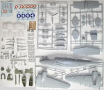 FM includes for the first time clear plastic for fuselage windows, landing lights, and under belly identification lights. The resin parts are beautiful as usual, and represent the interior cockpit with side walls, back wall, operator panel, dashboard, turret gun support, long exhaust for night version, wheels bays, and main body for the two 2800 engines. The white metal are for antennas, seats, tail wheel, gears, rocket rails, and engine cylinders. The photo etched include the dashboard to glue over the resin part, harness, anti glare panel for under wings. Finally, clear vac are for the canopy, middle upper turret, astrodome, rear under fuselage turret.