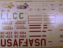 The instructions are typical Monogram in that they are excellent, with the construction being broken down into 8 parts each containing various sub-parts. The painting guide contains FS numbers for all the colors except Aluminum. Markings are provided for two aircraft, with both in black. One is the box top aircraft, “Dream Girl”, of the 34th Bombardment Squadron based in Pusan, Korea, in 1952. This aircraft is at the USAF Museum in Dayton, Ohio. The other is “Toni C”, also of the 34th Bombardment Squadron based in Pusan, Korea, in 1952. Decals are well printed and very glossy. The box art is also very nice and should provide some assistance in weathering the model, particularly with paint chipping and the exhaust stains on the engine nacelles that Invaders are so well known for.