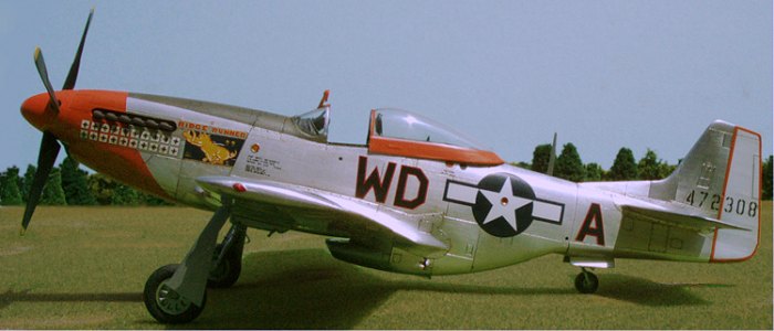 This Tamiya 1/48 P-51D completes my foil “Victory Triptych” of the Big Three USAAF fighters.