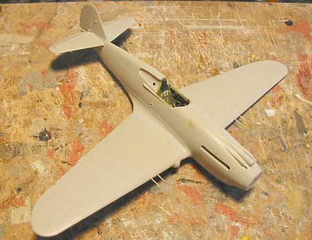I also couldn’t stand the “turned down” profile line of the upper rear fuselage, so I puttied that immediately to the rear of the cockpit and sanded it to give the straight profile line; the canopy had no problem sliding over it.