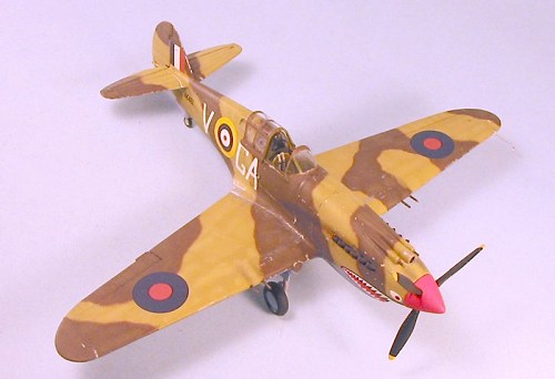 I “dinged” the model and gave it both oil and gunfire stains as well as exhaust stains, to represent a well-used front-line airplane in North Africa in the fall of 1941, finishing off with Xtracrylix Flat Finish varnish, which leaves the model “not quite dead flat,” which is accurate.