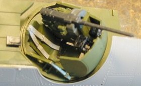 I also scratchbuilt and attached a K-14 gunsight in the pilot’s cockpit, since the kit does not provide a gunsight.
