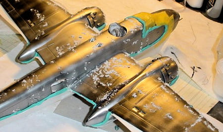 fuselage halves, attach the horizontal tail and fill the seams, attach the nose