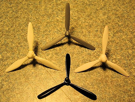 The photo of the props shows (top) Airfix, (bottom)