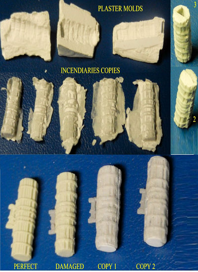 incendiaries in a slow process. The round endplates for the 2 copies were made