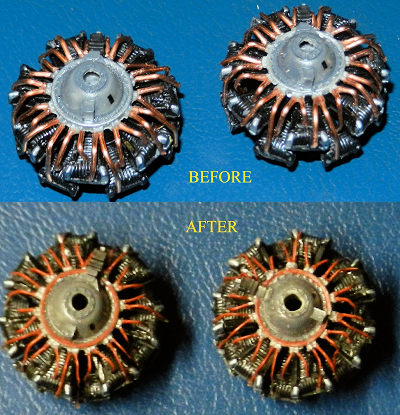Installed ignition wires (using copper wires) as the AM plastic ones are attached to the crank case and the ones that are supposed to go to the back row are too short. In my case I first used wire that was too thick (more than wires it looked like pipes going to the head of the pistons!) and so after careful (and frustrated) consideration I pulled out all the 28 wires and replaced them with thinner ones that were then pained using rust Acrylic paint.