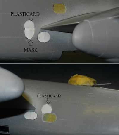And finally the two last details: the antenna running between the 2 tiny masts on top of the fuselage (stainless wire) and cut white strips of decal represent the “tape” (?) on the front right panel of the nose.