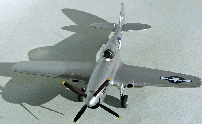 I chose an all metal scheme and thought, everything else should be the same colour, so I added the white metal undercarriage legs, the tail wheel and the doors. I used a Tamiya rattle can, TS 76 Mica Silver. Two or three coats gave a good glossy finish ready for the decals.