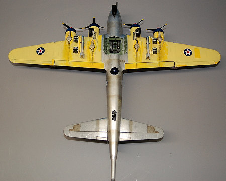 This was yet another of my stash purchases from a garage sale that I came close to giving to the neighborhood kids for bb practice, but then I caught a bit on U-boats from a research project that remarked on the sinking of a sub from torpedoes launched by a B-17. My WHIM (whatifmind) went into overdrive, and I immediately thought of a beautiful early war 17 all done up in silver, blue and yellow!