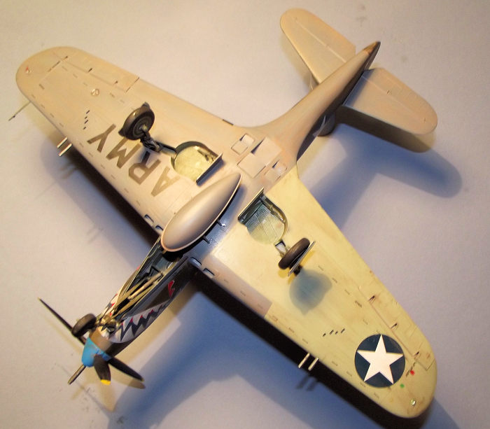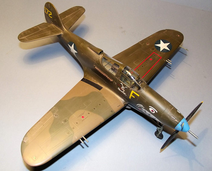 The paintwork was an interesting mix of camouflage from two air forces. I accept that RAF camouflage on US-built aircraft of the era is actually based on DuPont paints as near equivalents but rather than try to duplicate these, nor any attempt at jungle-faded US colours, I settled for standard RAF and US colours from my home stock of paints.