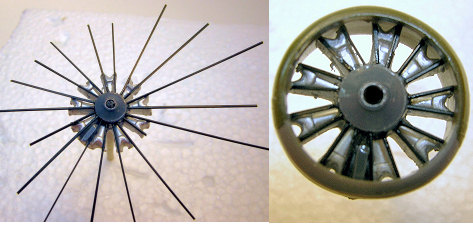 Wheels seem to be a sore point with the Czechs, who insist on molding them as split halves. That wouldn’t be such a problem if they didn’t always embellish the hubs with sink holes. Filing the filler wasn’t as difficult as expected. A few wiggles of a half round riffler file followed by a bit of buzzing with a converted toothbrush vibrating sander.