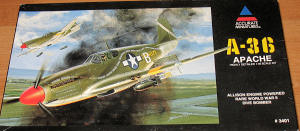 A-36 Apaches served in the CBI (China/Burma/India) Theater and in the Med with the 27th FBG and some 177 were lost of which many fell to small arms fire hitting the engine oil cooler that was located underneath the wings (foreshadowing Mustang losses in Western Europe and later Korea.) Due to the poor high altitude performance of the Allison engine, the Apaches did not fare so well in the CBI theater because of the altitude. Apaches served till 1944 when they were replaced by P-47s and P-40s.