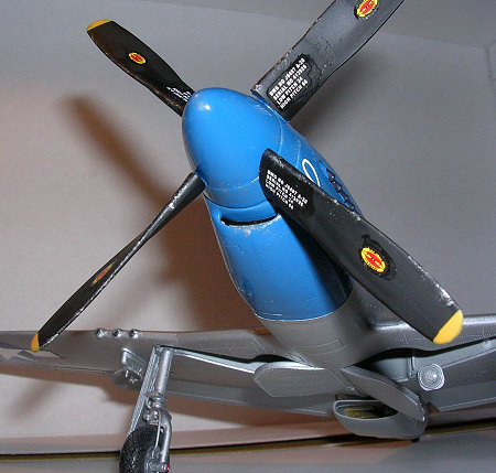 Prop- blades fit in notches and ARE NOT posable in axis. I still can’t tell whether they are backwards or “wrong” but by now- I am past caring.