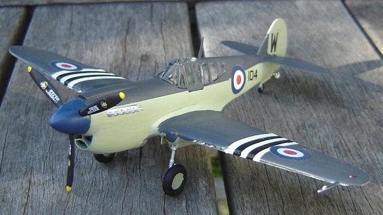 Nine Kittiwakes are in existence today, with only four currently airworthy (although others are either under restoration or slated for this). The aircraft represented by this model is in fact a stock P-40E operated by the Confederate (now Commemorative) Air Force in FAA colours. Registered N440CF, the former RCAF trainer was restored during the 1980s by Archibald Rafael at Montreal, flying again in 1987. She was donated to the First Observation Wing (Washington state) of the CAF in early 1995, and was repainted soon after as Kittiwake FB Mk.2 WA196, serving aboard HMS Wasp in 1952 (this aircraft was later transferred to the RAN and was written off after a landing accident in 1957). She was attached with a dummy tailhook and proved very popular at the CAF’s annual Airsho as well as several other events around the country. After several years on the West Coast airshow circuit, she was transferred to the Gulf Coast Wing (based at Houston, TX) late last year and reappeared as an American Volunteer Group P-40E flown by Lt Col Edward Miller in Burma, 1942. An authentic Kittiwake, FB Mk.1 WA012, is held by the CAF at Pittsburgh, PA for eventual restoration (to be registered N40H).
