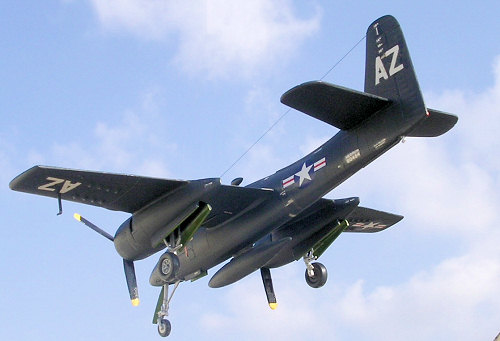 The Tigercat was equipped with two Pratt& Whitney engines R-2800-34W Double-Wasp that permitted to reach a speed of 724 Km/h at the altitude of 6,553m. Its armament consisted of four 20mm cannons with 200 rounds per gun and four 50 calibre machine guns in the forward fuselage with 300 rounds per gun. External bomb racks could carry various combination of rockets, bombs and additional fuel tanks or a torpedo beneath the fuselage with a total weight of 1,814 Kg.