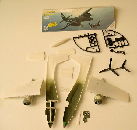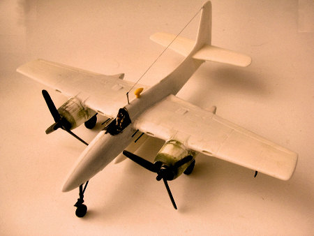 F7F-3 day fighter, moulded on a sheet of white plastic. This caters for the wing