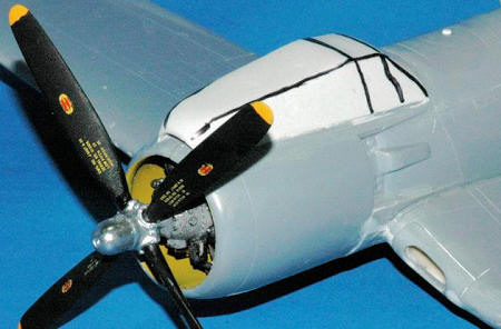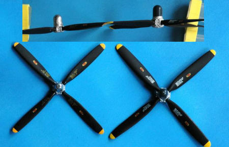 prop tip color (yellow) and featured a dark sea blue painted front prop hub with