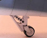 I drilled the lightening holes deeper in the tail wheel strut and added one near the top that Eduard left off. The kit tire is the proper solid rubber one usually seen aboard aircraft carriers.