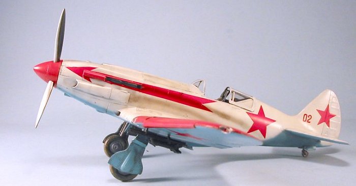 I then attached the main gear, the prop and spinner, and the sliding part of the canopy. With a coat of Dullcote mixed with Glosscote, I got a “satin” finish overall, which I think accords with the heavy coat of polish Russian airplanes received.