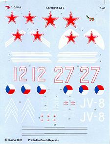 Decals are included for the La-7 flown by Ivan Kozhedub, as well as an La-7 flown by Maj. F.N. Kosapalov and one used post-war by the Czech air force.