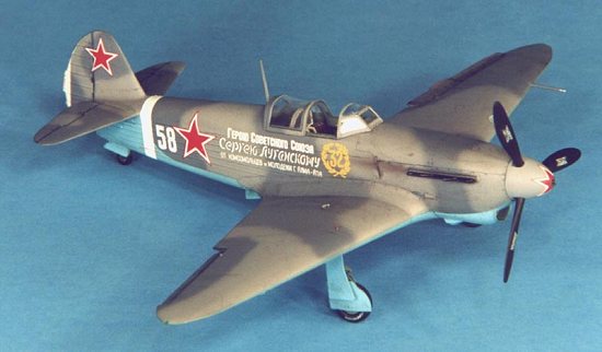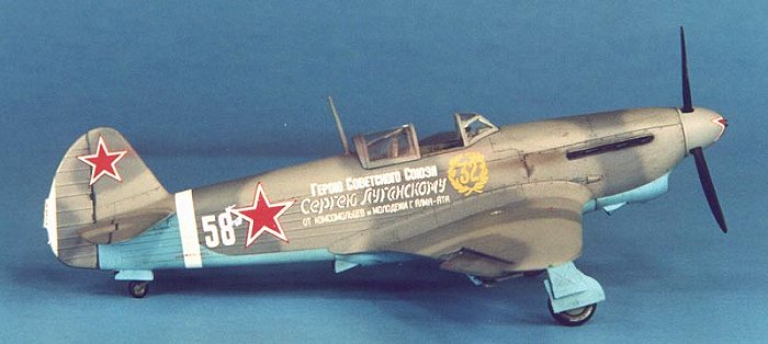 The aircraft modeled was flown by Sergei Lugansky, CO of the 152 Guards Fighter Regiment, an ace with 37 kills.