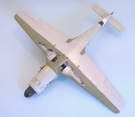 Following assembly of the wing, I attached it to the fuselage. The engineering of the parts was so good that this was the best-fitting resin kit I have built. I only needed a little bit of Mr. Surfacer 500 on the fuselage centerline and the wing-fuselage attachment seams to clean everything up.