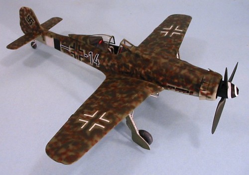 I had decided to do a "what-if" model of an operational Ta-152C-0. I decided to do something that would be a variation of the field-applied camouflage of the famous "Yellow 10," since I think that provides a very interesting look. I also figured that it would be likely such a camouflage would be applied, since it was most likely that - had the Ta-152C been produced in 1945 - it would have featured a very simple factory-applied paint scheme, as had "Yellow 10."