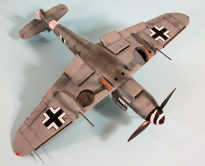 While this new armament was more than satisfactory when used against the Soviet aircraft on the Eastern front, it was apparent that even this upgrade was insufficient to assure a kill against the B 17 or B 24 in the limited amount of time a pilot had to bring his weapons to bear as he dove through the American formations. As early as the Bf 109F 4, the Ruestsaetze Sechs (R6) had been available as a field modification; this was a 20mm cannon in a gondola under each wing immediately outboard of the main gear wells. The heavy weapons had a deleterious effect on maneuverability in fighter vs. fighter combat, but in 1943 the Germans could afford to wait until the escort fighters turned back for lack of fuel, before commencing attacks on the bomber formations. Thus, the "Kannonenboot," or "gunboat" became the must numerous version of the G 6 to see combat in the West. Of course, later in the year, and in 1944, the gunboats would be "meat on the table" to P 47s and P 51s equipped with drop tanks that enabled them to escort the bombers to the target and back, and by late Spring 1944, the guns were no longer to be seen, replaced by a 30mm cannon in the nose.