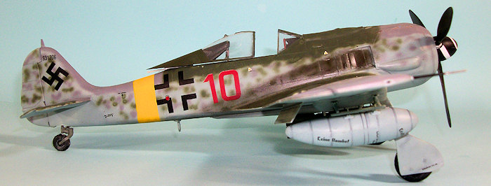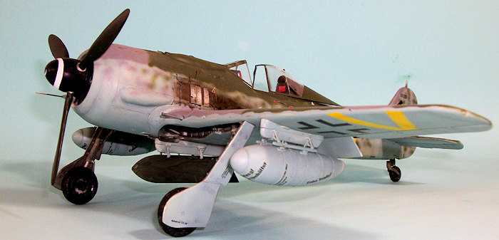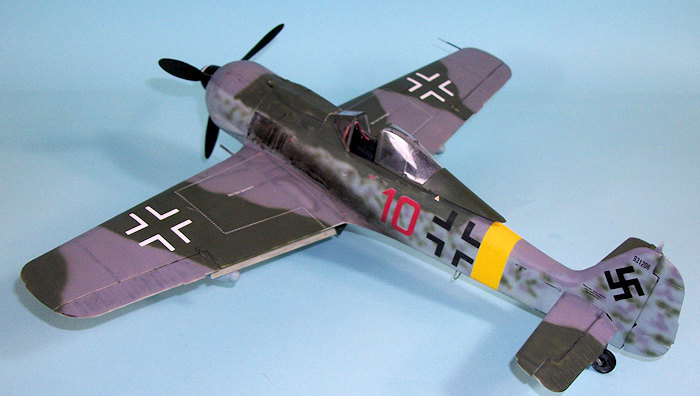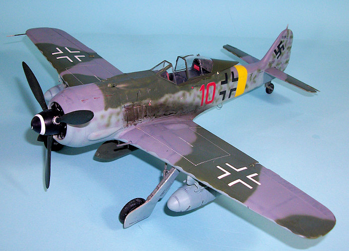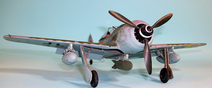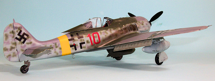 I gave the model a coat of clear flat, applied the heavy exhaust staining associated with the BMW 801 engine, and posed the flaps down and canopy open.