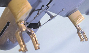 As mentioned above, I replaced the landing gear with Jerry Rutman’s conversion. This provides the gear leg fairing in resin, with the gear leg itself done in white metal, with resin wheels. The conversion presents no difficulty, inasmuch as it directly replaces the kit parts.