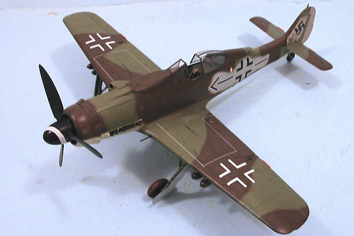 I enjoy doing late war Luftwaffe airplanes because you can be very creative with the colors you use, and no one can prove you wrong. This Wurger looks completely different from all the others in my collection, and I like that fact a lot. This limited-release kit was put out in 2004 at the latest (it might even have been 2003), and is long out of production. They show up occasionally on shop shelves, dredged up from the supply warehouse, which is how I found this one. The kit decals are nice, but the Lifelike sheet is superior. Either way, you can end up with a very different-looking Dora.