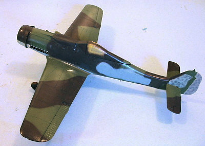 After applying “preshading: over all the panel lines by airbrushing flat black, it was time to camouflage this bird.