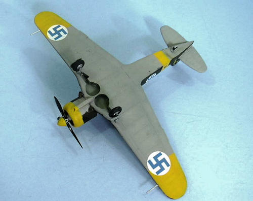 painted the lower surfaces with Tamiya “sky Grey” and the upper surfaces with