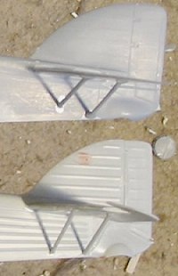 When I compared the tail parts of the two kits, I realized that the Trumpeter vertical fin and rudder, and horizontal stabilizers and elevators, are too small overall by about 20 percent in comparison to the Classic Airframes kit. This is not something you can fix.