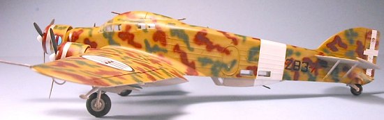 The Classic Airframes S.79 was done as a re-engined late-production I Serie Aerosilurante with a field-applied night camouflage consisting of grey blotches over the dark green factory-applied camouflage.