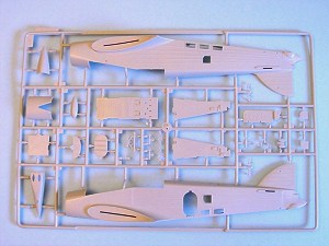 In actual fact, outside of a couple of minor glitches, the model looks pretty good on the sprues. The glitches are that the cockpit interior is nowhere near as detailed as that of the Classic Airframes limited-run kit; given that the kit is also not designed to have the gunner's position at the rear of the "humpback" opened up (as you can do with the CA kit), the lack of cockpit detail is not so obvious. In fact, given the "clarity" of the cockpit canopy clear part, you won't be able to see a thing inside unless you Future the part before assembly.