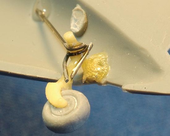 surface of the plastic prop (part A19) and inserted a metal pin made from