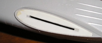 The antennae wires were fashioned from monofilament sewing nylon. There are two sets of these wires originating just aft of the canopy to mid-span of the wing on either side. I realized I made an error only after these were completed. I thought that the slight bumps just aft of the side canopy glazing on either side were the points of origin. It turned out that I was wrong, they should have been slightly lower down.