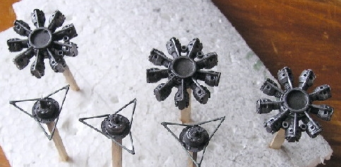 Once assembly of these parts were completed, I sprayed the engines and crankcases with Humbrol Gunmetal and highlighted the details with a dry brushing of sliver. The crankcases were then glued to the engines and the subassemblies set aside.