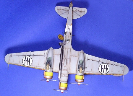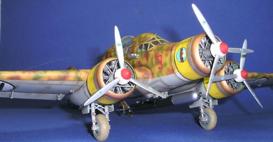 The undercarriage and gear doors were super glued in place together with the engines, cowling and propellers.