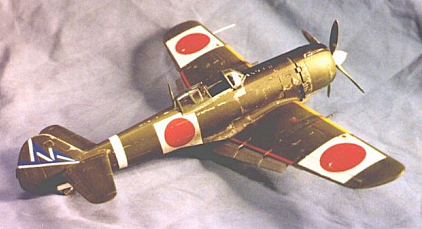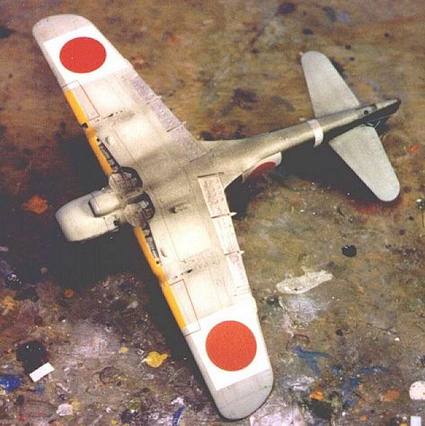 Japanese airplanes weathered faster than those of other air forces due to the poor quality of the Japanese paints used on them. With the paint faded out, I proceeded to add chipped and scuffed areas around panels and on the wings, with chipping along the leading edges of all flying surfaces, etc. Usually, the best rule with weathering is "less is more," but with Japanese airplanes it is often the case that "more is not enough." The end result here was heavier weathering than I would do on an Allied aircraft (other than a Marine Wildcat or Corsair in the Solomons), and I am happy with it.