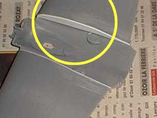 junction, along the fuselage. I inserted a plastic card strip, and I cut it out