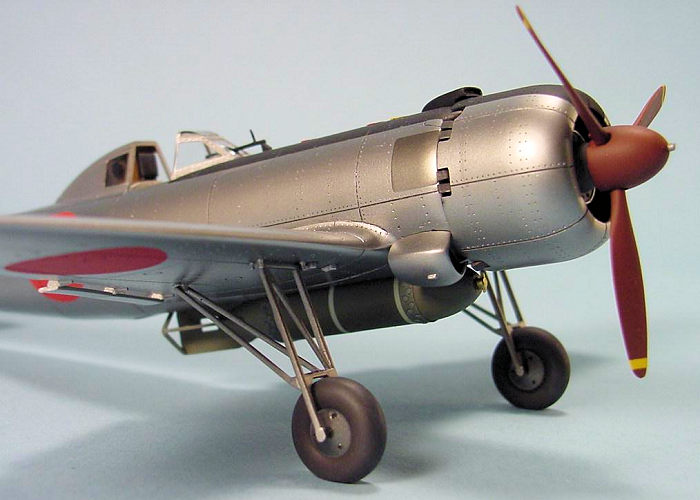 You will notice that there is no weathering of any kind on the model. This aircraft was not one that was designed to be flown more than once as a rule. The landing gear was jettionsable and the bomb could not be released, so landings would be somewhat problematic. With those factors taken into consideration, models depicting weathering from use would not be realistic. The most weathering one could expect to see on this type of airframe would be oxidation from exposure to the elements.