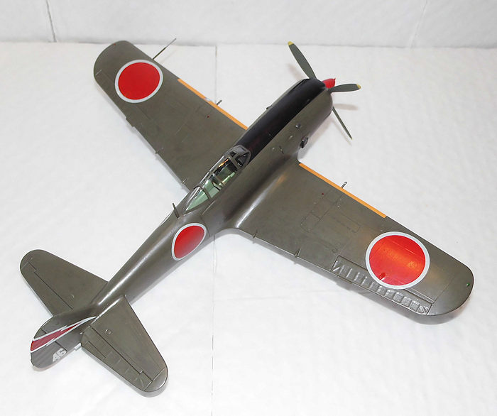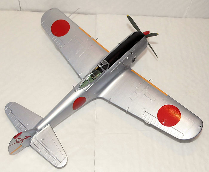 After drying and the obligatory touch up on the Hinomarus edges (red and white paint), because they had cracked a bit, the decals were given a gloss coat; when dry the silver Frank got a satin finish, with the exception of the anti-glare panel, which went flat, as with the camouflaged Frank got all over as well.