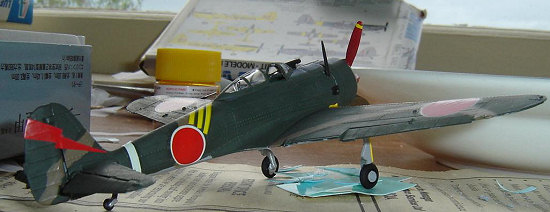 When it came to decals I hit a bit of a snag. As mentioned previously the included decal sheet has only the four wing Hinomarus and NO FUSELAGE ONES! Luckily for this Kiwi, a mate of mine Stateside had sent me a Hinomaru sheet for my Tora, Tora, Tora Harvard/Zero conversion, which just so happened to include a white-edged Hino of perfect size for a Hayabusa! (Your editor should point out that early in the war, Army aircraft often did not wear fuselage insignia so not having them would be correct).