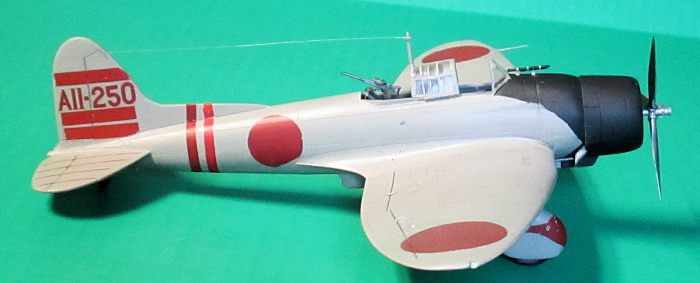 I was inspired to build this kit by the hoopla surrounding the 75th Anniversary of the Pearl Harbor attack in 2016. My attention was drawn to the well-publicized account of the Makino incident. As stated, the kit decal sheet allows one to cut and paste most any tail code. But I had to dig into the big decal scrap box for striping. With a little trimming I came up with about everything I needed in the matching Japanese brick red color, except for one fuselage stripe. Not wanting to put the project on hold I used one stripe of a different shade hoping you would not notice. The big Hinomarus on the wings needed Micro-Sol to settle into the engraving. I clear coated with AV Satin Varnish acrylic. Weathering was kept minimal as the Pearl Harbor aircraft are reported to have been in pristine condition.