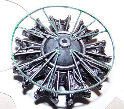 in place. The black-painted cowling attaches over it, glued to the fuselage